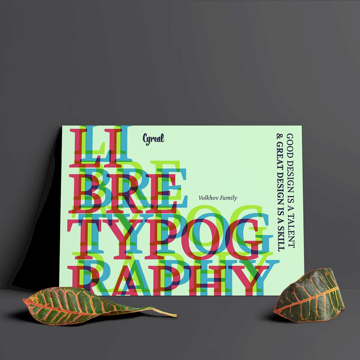 Cyreal Libre Fonts are maintained by Alexei Vanyashin, based in Almaty, Kazakhstan